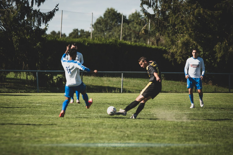 Si la première période manquait un peu de rythme – c'est qu'il faut s'y remettre, malgré les matches de préparation et de coupe ! – la seconde se révèlera plus animée, avec l'ouverture du score par l'ASB d'une frappe puissante de Johan Beusnard à l'entrée de la surface de réparation.